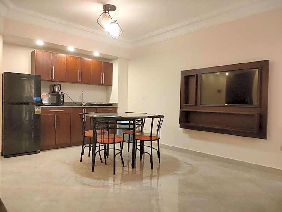 This spacious, 1st-floor apartment features a balcony, 2 bathrooms, a larger reception area, and a bigger kitchen.